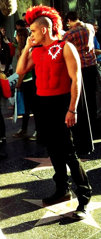 In another "Glee" news, Ryan Murphy recently tweeted a picture of Mark Salling filming the FOX musical series in Los Angeles. The Puck depicter rocked a superhero-themed costume which included red Mohawk, fake abs and a cape.