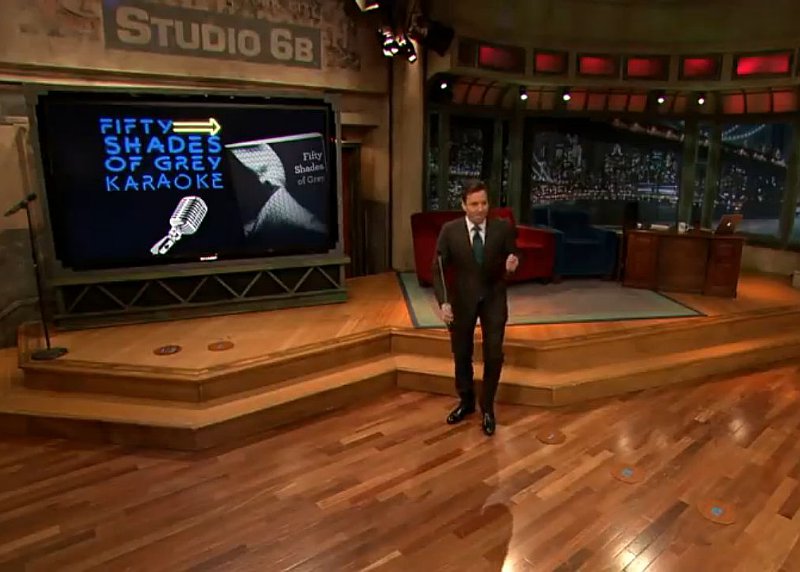 The much talked-about "Fifty Shades of Grey" novel has inspired a segment on "Late Night with Jimmy Fallon". In an episode aired Wednesday, June 20, Jimmy Fallon hosted a "50 Shades of Grey" karaoke competition which "combines the beautiful music of The Roots with the morally deprived words" of E. L. James and her erotic novel.